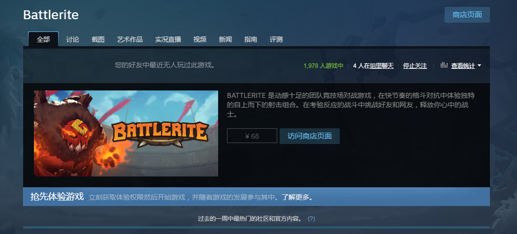 战争仪式(Battlerite),看似游戏模式单一,目前英雄种类不多。但未来的更新将会迎来更多招数鲜艳而不同的英雄人物,一旦深入了解,就会发掘到它独特的魅力。寻找应对不同敌人时战争仪式的选择,和基友摸索不同类型英雄的搭配,在实战里研究英雄的细节操作。游戏经历过内测,免费周,打折。拥有一定数量的玩家。可能在国内游戏圈的宣传力度不够,一直不温不火。体验版玩家们的评价与建议不仅是对游戏内玩法进步的刺激,也是对工作室进一步完善开发这款游戏的鼓励。