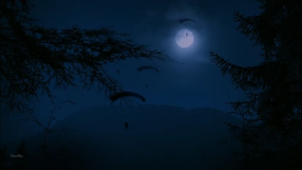 随后夜空中绽放出六片“花朵”,在圆月和树木的映衬下,画面还是很有中国风的味道(虽然知道这不是在中国取的景,但还是看得出导演的细心)。