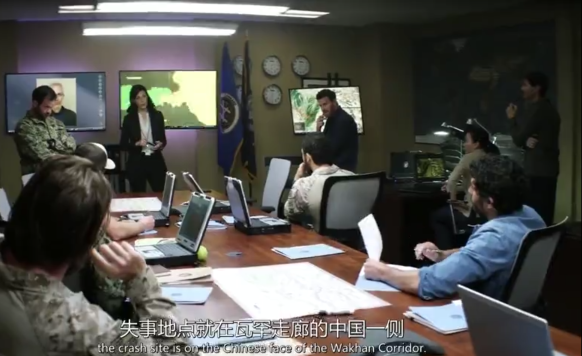 画面切换美国本土(至于描写海豹队员私生活的画面这里就不再描述),海豹队员们被紧急召集在各种屏幕堆砌的作战室里,听着气场满满的女作战参谋给他们做任务简报,任务很明确,一架载着美国间谍及其家属的飞机(就是上面我们提到的那架)坠毁在中国与阿富汗交界的瓦罕走廊,你或许会问她是怎么知道的呢?因为美国的侦查卫星无处不监视。然后海豹队员们的任务自然是去事发地营救这个间谍,如果死了的话也顺便毁尸灭迹。