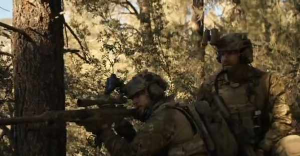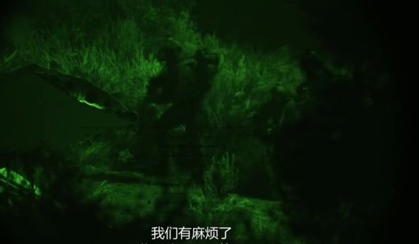从天而降的海豹突击队的六名队员成功进入了中国境内,你可能又要问:难道我们的边防线如此不堪吗?那倒不是,我国的边境线太长,环境多样,有的边境线由于环境艰苦不适合人长期居住,所以边防军人往往会按一定周期巡逻,但并不会长期在此驻守,类似于之前的洞朗地区。海豹们根据地图摸索着前往失事地域,导演给了很多从夜视仪镜头里取的景(第一人称视角很有带入感),这样我们也更直观的了解夜视仪在夜战中发挥的作用。