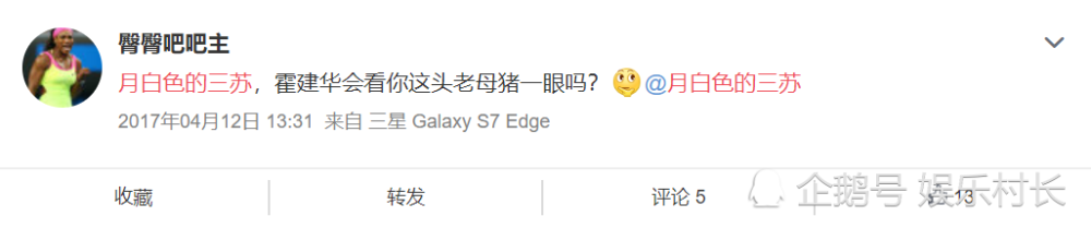 值得一提的是网友“月白色的三苏”曾在网络上非常有名,曾是霍建华的铁杆大粉头,不过后续霍建华退出微博,该网友因辱骂林心如被起诉之后也退出微博平台。当时还有不少网友讽刺该网友作为霍建华的粉丝却辱骂林心如,不知霍建华会看网友一眼吗,引人热议。