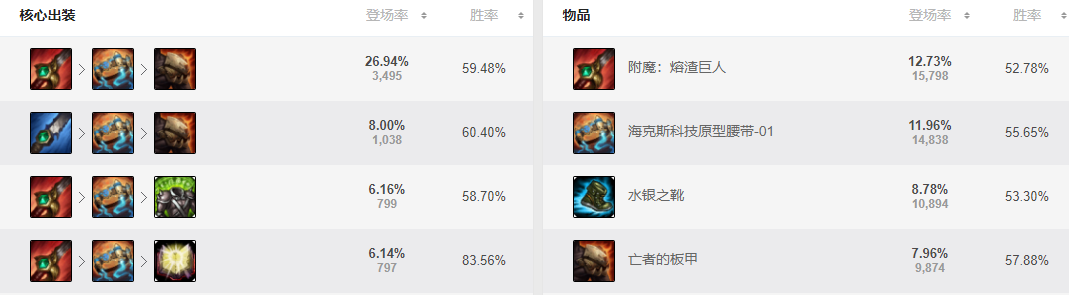出装方面,和中单雪人大同小异,除了打野刀以外打野符文,其他装备基本上和中单雪人是一样的,火箭腰带和板甲是核心,有优势出杀人书,均势出石像鬼板甲或是振奋,提升血量的同时提升坦度,打野雪人要比中单雪人更能扛,特别是在打团时,开大有护盾,Q技能能回血,还有石像鬼板甲血量翻倍,雪人能在团战里扛很长时间。