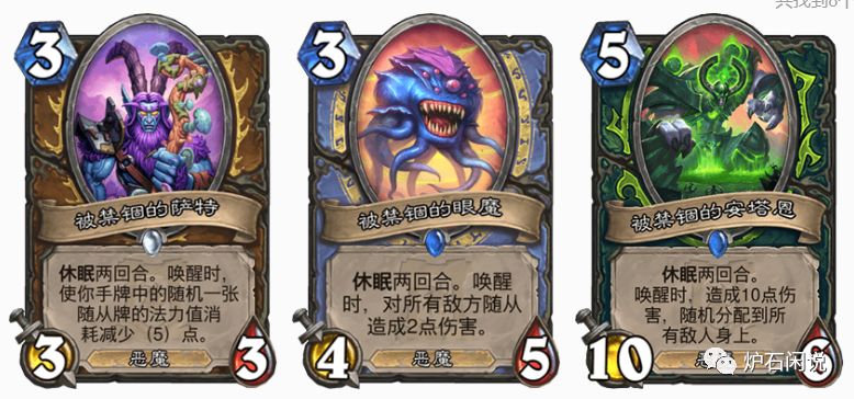在官方的演示视频中,这张法师的随从——被禁锢的眼魔,其苏醒之时的异能,就是给对手的随从造成2点的AOE伤害。对于这个机制,实际上作用还是比较强大的。在初始话费费用的时候体现不出来,等于是让出了一定的费用节奏,但是正是因为如此,所以休眠的随从的苏醒时的异能一定能够发挥出来,因为休眠的随从无法被任何方式指定炉石传说流放机制,直到苏醒之后成为正常的随从。所以这个机制实际上和萨满的过载相反,是花费现有的费用,保持对对手后期的威慑,限制其出牌的节奏,算是一种可玩性很高的机制策略,期待其在新版的体现。同时,根据官方的蓝贴解释,休眠的随从除了无法被任何方式指定之外,被异变/衰变出来的带有休眠机制的随从,其展现的也是休眠状态,2个回合之后自然苏醒发挥作用。