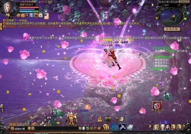 看了这么多威严严肃的场景,真正要来一发绝美的场景了。《魔域》可能给大家的第一印象就是热血的军团战和PK,其实,魔域的场景也是下足了功夫。泡妹必须要去的地方就是双心湖,可以说这样的一个地方和平时玩惯了军团战的老哥们来说有点不解风情。不过,双心湖确实能给需要休闲、聊天的玩家之间提供一个唯美的场所,买什么玫瑰花?根本不需要,场景免费送!