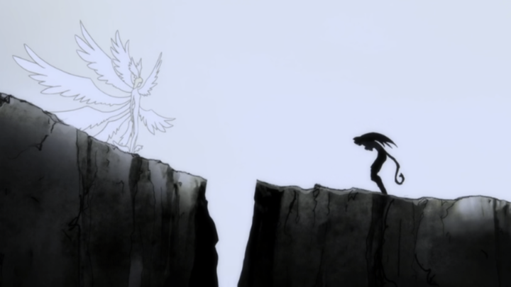 原作中结局时飞鸟对不动明的坦白在动画中简化为了飞鸟自我认知后的回忆也因此原作中的这一最终主题在动画中显得不那么重要。在动画中增加了人类与恶魔,飞鸟与不动的最终大战的篇幅,又在结尾处增加了飞鸟对不动的独白。可见,动画更露骨的展现了原作中较为隐晦的飞鸟对不动的爱,也因此将动画的最终主题转化为了“恶魔是否有爱”的思考。这里的处理可能是让动画更易理解,但思想深度也因此不及原作了