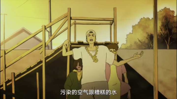 动画音乐中最具特色也最为惊艳的就是说唱小哥带来的freestyle。基本上说唱小哥带来的说唱都是十分映衬主题的。它不仅仅十分带感,还推动了剧情的发展。例如第七集开头的说唱,当时恶魔的存在刚刚向世界揭露,也因此世界陷入恐慌。在说唱小哥的freestyle唱到“害怕的人们拿起武器杀人,不害怕的人手无寸铁,反遭其害”时,正配上恶魔搜查队欺负百姓的图像,不仅交代了当时的背景,更是突显出恶魔搜查队的毫无人性以及真正无辜的百姓的可怜