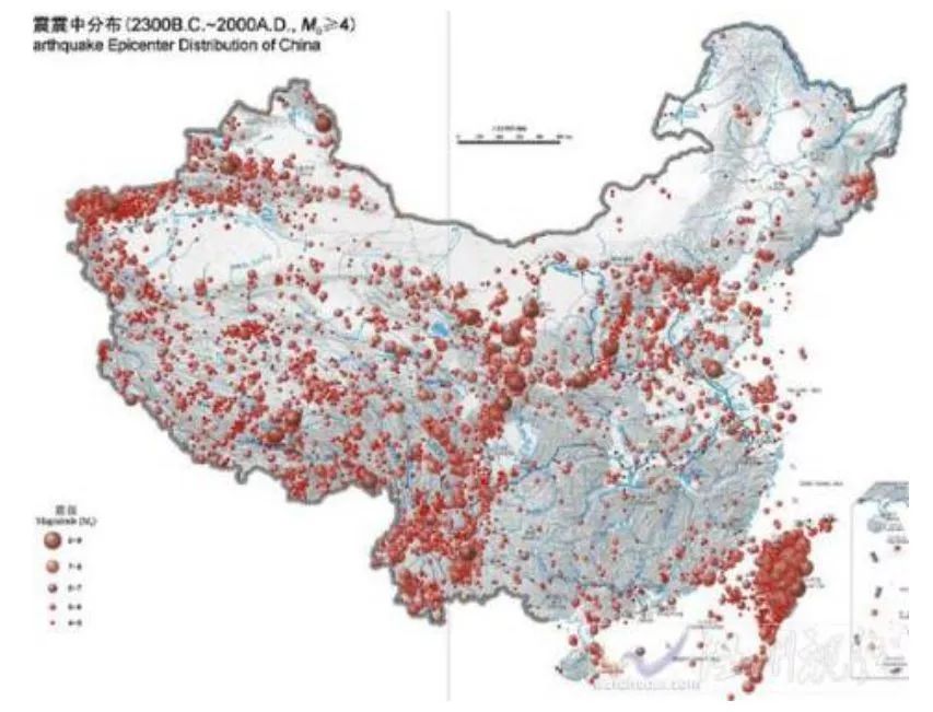 中国地震带历史地震震中分布图