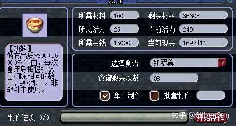 大红需要100材料+25活力+15000钱 ~ 食谱40w 可以做45个左右