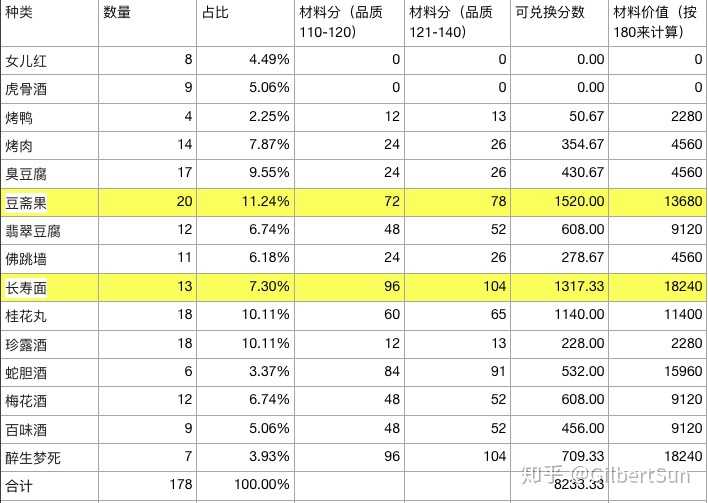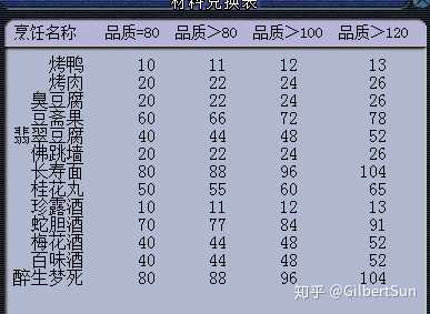 那么大数据算的基本就这样了~但是! 问题也就出现了!烹饪出什么东西 不去换材料,直接卖钱呢???先看一下 兑换表,按照材料价值180来换算