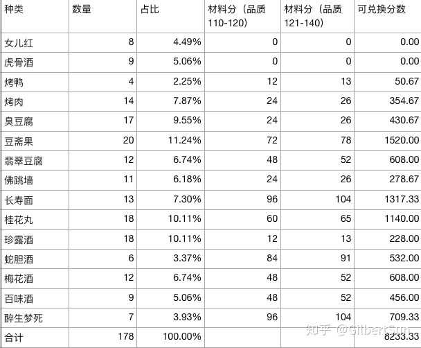 首先说明一下 140级烹饪 可以烹饪出110-140品质的东西,那么兑换分的时候我们就按照 1:2的比例来计算 110-120和121-140的比例。如图可知9880点活力共计可以兑换8233分材料,那么简单换算一下 1点活力=0.833材料