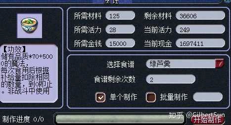 大蓝需要125材料+28活力+15000钱 ~ 食谱50w 可以做40个左右