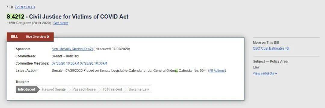 法案目前还在提议阶段 美国国会官网