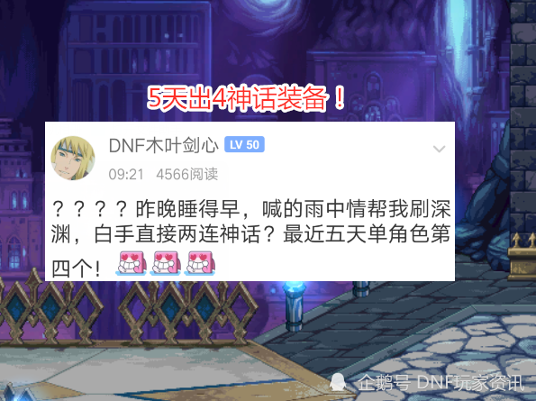 木叶晒星空智慧活动,剑魂5天出4神话,非酋却全是紫色柱子