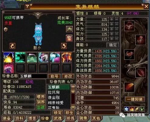 说到天龙八部中真正绝版的珍兽,当属变异至尊神兽。这种珍兽在天龙八部全服中可谓屈指可数,可以说见过的玩家少之又少。作为一个95级可携带的珍兽,门槛相对来说还是比较高的。一般来说,变异至尊神兽都会被玩家当做宝来对待,基本上每一只变异至尊神兽,不管是悟性还是技能的打造都相当给力,当然这一只从侧面是看不出来外观是怎么样的。