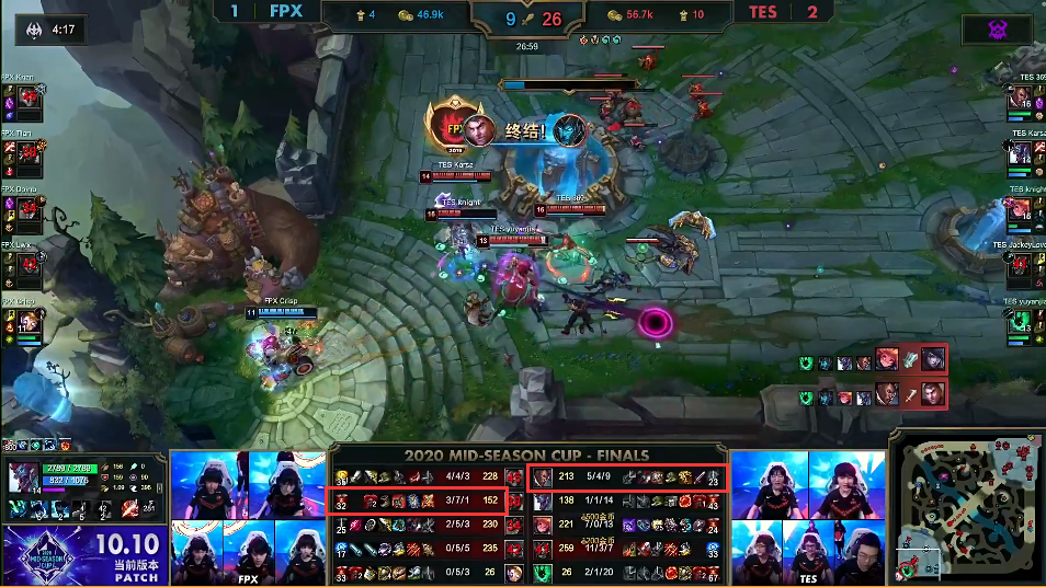 经过四局鏖战,最终TES以3:1战胜FPX,夺得队史上首个冠军及首个国际赛冠军,并且这也是继RNG夺得18年MSI冠军后,全华班再次在国际赛拿到冠军。通过这场比赛,369、Karsa和预言家得到LPL玩家认可,TES也真正成为五个位置都能担任核心的强队。
