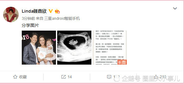 时隔三年,钟嘉欣又怀二胎,可谓是三年抱两,网友听到这个消息之后,纷纷纷纷评论“永远爱你嘉欣BB,睇到你宜家咁幸福,我都超级开心嘅!祝你平安诞下宝宝钟嘉欣宣布怀孕,未来一切顺利。”,“恭喜嘉欣BB&Kelly妈咪!会期待更棒更幸福的钟嘉欣回归”,“恭喜梁生梁太还有小爱晨,一家四口幸福快乐哦”。
