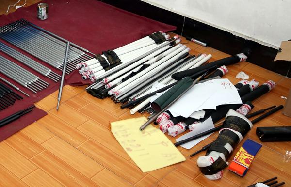 在江夏区藏龙岛一处窝点内,一些枪管已被塞入PVC管伪装成了普通水管邮寄。 王威 摄