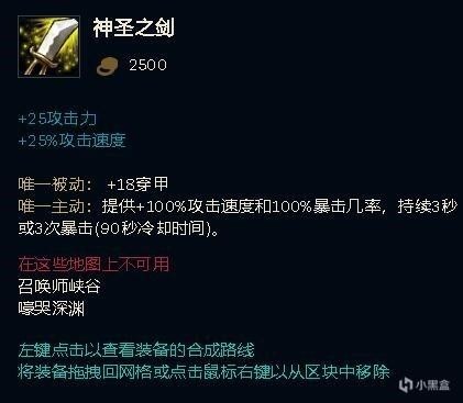 关于穿甲流,极限闪击模式有一个非常强力的装备,神圣之剑。神圣之剑不适合刺客去出,刺客不能在团战里带太久,要的是爆发伤害,不能完美利用3s主动技能,攻速也不适合。