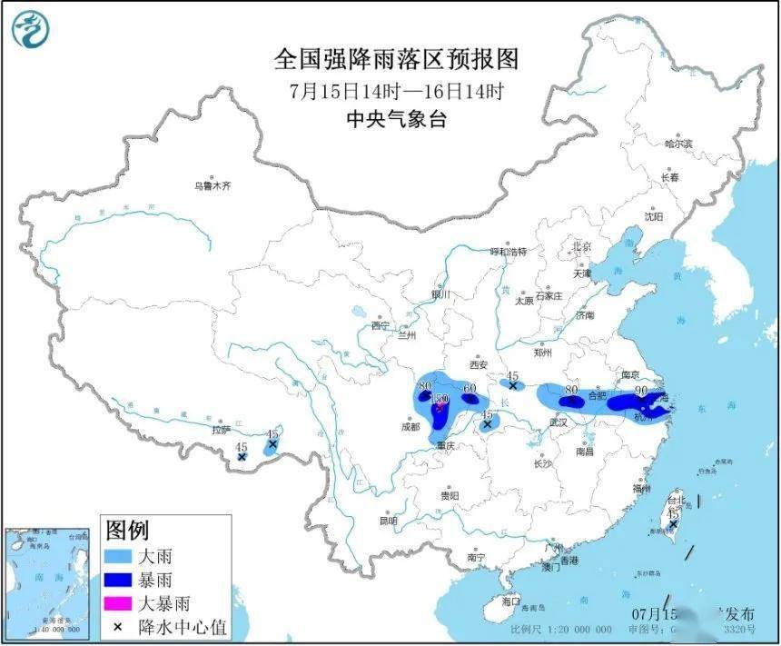 7月14日至16日,长江流域再次迎来强降雨过程,湖北、安徽等部分地区累计雨量达100至180毫米,局地可达200至300毫米;17日至19日,西南地区东部、西北地区东南部、黄淮、江汉、江淮、江南西北部等地还将有一次强降雨过程。