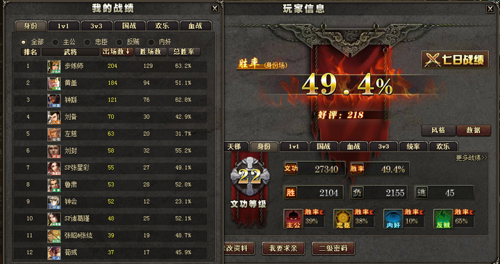 这是我的游戏记录,断断续续玩了4、5年,只玩军争,从未刷过文功、胜率之类的。所以就仅仅谈一点军争的愚见。