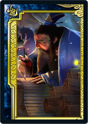 钟繇的插画也非常好看,深夜烛光旁,一位伏案写作的慈祥的大胡子老爷爷,帐外是准备支援给曹操的马匹,非常有意境。钟繇确实活了很长的时间,在三国鼎盛的时期就是以一个老者的形象出现。钟繇的配音也很不错,良好的体现了其思想观念,“只有忠心,没有谋略是不够的。X军恩荣,报效国家。笔墨写春秋,挥毫退万敌。妙笔在手,研磨在心。”可以看到他对晚辈的谆谆教诲(说你呢,造反滴钟会)。钟繇和钟会的技能配合度有一点三国杀一将成名,但是不高,钟会濒死的时候,钟繇可以救自己的儿子,并且给自己儿子黑非基本牌(装备、锦囊牌质量较高)除此外并无太大亮点。