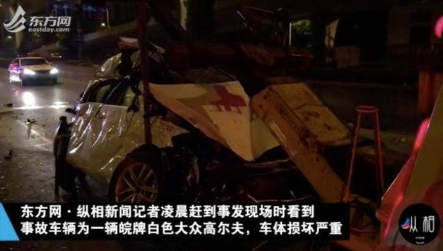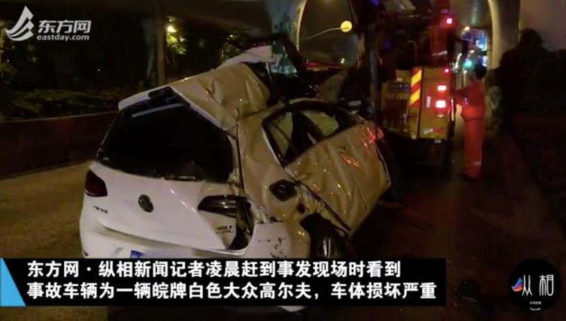 6月1日凌晨,东方网·纵相新闻记者在现场看到,警方对中环高架广粤路段的地面部分道路实施了临时交通管控,一辆面目全非的白色外牌小轿车正在被清障车拖离过程中,车辆整体严重变形,全车气囊打开,车道内散落了大量汽车零部件。