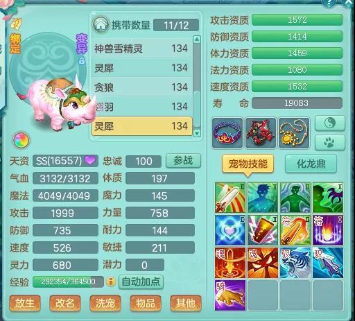 在打造思路上,反制宠也分为闪避流和面板流两种类型。闪避流顾名思义就是在打书上配合"灵敏"、"飞行"这两个兽诀,它们都能提高宠物的物理闪避能力,同时灵敏还能让宠物不受报复和逆击影响,飞行则是能稍稍提速。所以理想的情况就是,对方过来攻击先被反制宠闪避掉,再触发"反击"效果,还被反制宠攻击一次,这画面想想就刺激。
