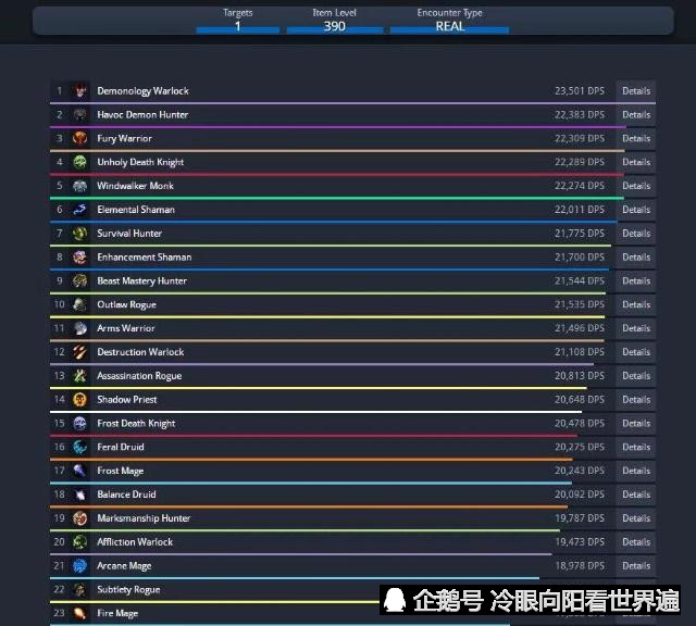 我们可以看到,本次测试盗贼已经跌落神坛,尤其是敏锐贼已经沦落到和火法、惩戒骑一个地步。而我们的冰法也沦落到了第17名的位置魔兽世界dps排行榜,暴雪对他的“亲儿子”真的没有那么关照了?本期的测试服DPS排行,只是测试服的结果,正式服上线以后才能敲定结果。