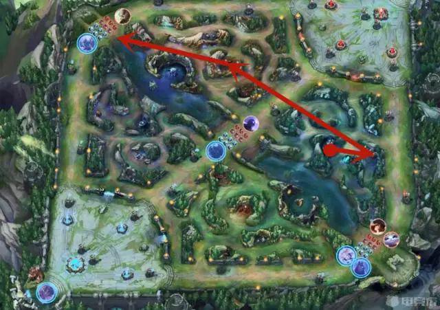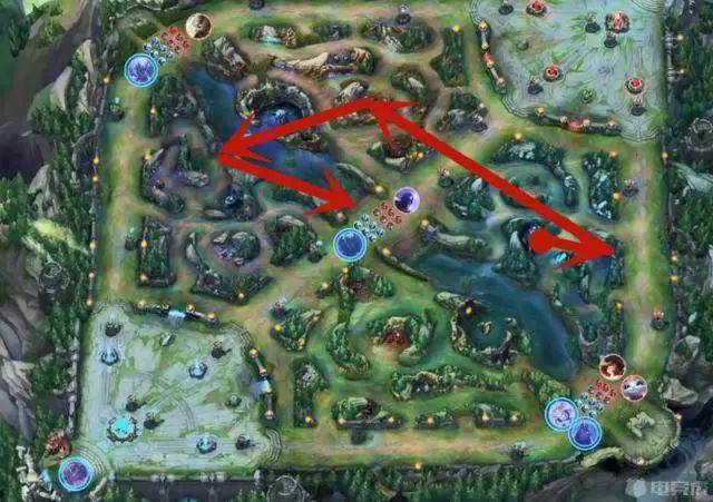 第二个打法是先清三组野怪,从蓝区到红区,然后去边路gank,早早地做点事情,观察地图。这是标准的打野打法,比如蓝buff、蛤蟆、红buff,然后三级gank;