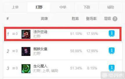 不知道同学们是否还记得,在当年的S6赛季,前期一个男枪在野区疯狂刷野,时不时的去线上堆叠一下黑暗收割,然后在出山后就可以一枪打出超高的伤害,把所有人都打哭。不过随着版本的变更,黑暗收割和男枪都不再强势。但是现在他又登顶了!根据目前韩服10.10的数据榜单显示,他位列打野T1梯队榜首,是目前最强的打野英雄之一!