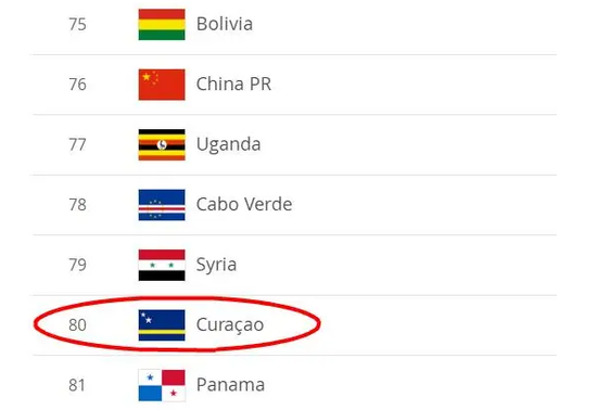 库拉索是荷兰的自治领,是个位于加勒比海的岛国,面积444平方公里,人口约16万。但可不要小看了库拉索,在最新一期国际足联排名中,库拉索位居第80位,只比中国队低4位。