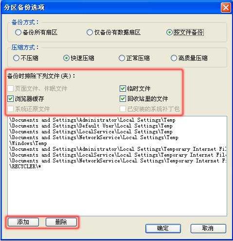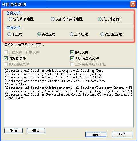 备份分区时,可以指定备份方式与压缩方式,如下图所示: