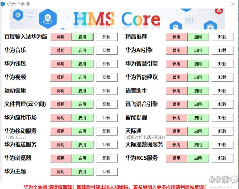 YUYU助手是一款针对华为手机的adb卸载工具,主要特点就是可以完美卸载、禁用、停用,不需要复杂的CMD命令