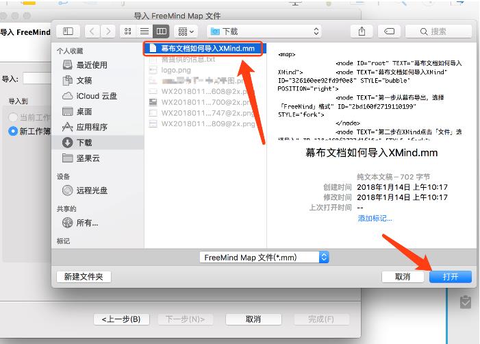 5、选择刚才从幕布导出的以「.mm」后缀结尾的文件