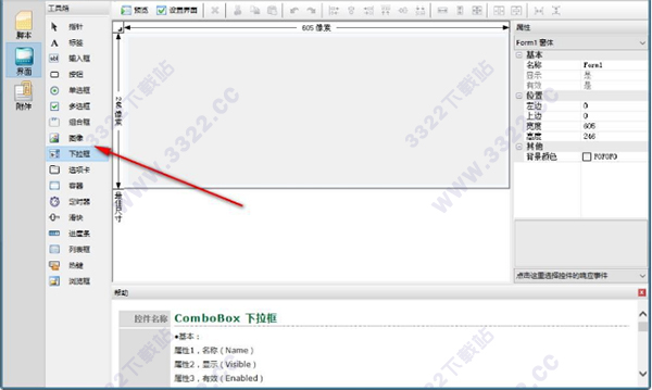 5.界面功能,可以选择鼠标指针控制、标签控制、下拉框控制、组合框、单选框
