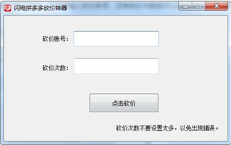 拼多多砍价软件无限砍软件功能说明1、支持简单的砍价功能,需要您在拼多多预先添加商品2、购物车的商品都是可以在本软件砍价的3、也能设置多次砍价,更好完成调价处理4、帮助客户对需要调价的商品砍价5、砍价完毕就可以查看自己商品的信息6、提供简单的操作界面,自动对当前的商品砍价