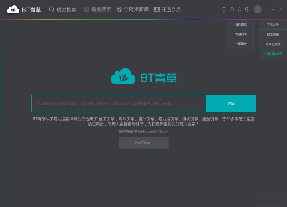BT青草是一个强大的BT种子搜索器。我相信你下载资源的时候,一些晦涩难懂的资源或者不容易下载的资源需要BT搜索,所以你只需要BT青草,这是一个功能齐全的搜索者。界面清晰,具备BT搜索、磁力搜索、图片搜索等全网搜索功能。支持自动分类和直接下载,是一款可以看VR的神器。有了它,你可以找到任何你想下载的电影、音乐、软件、视频和小说。本网站提供的VIP为破解品牌,破解VIP,支持无限搜索。