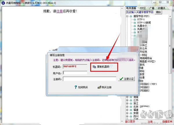 流星网络电视注册机使用教程: