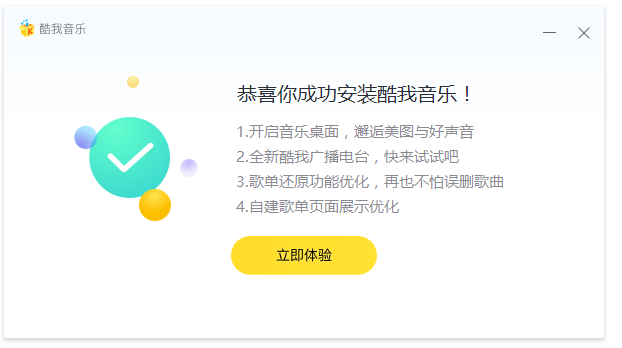 恭喜你成功安装酷我音乐!