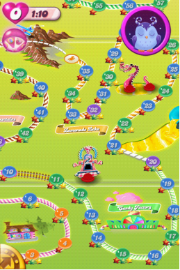 《糖果粉碎传奇中的糖果粉碎传奇》是一款画面精美的游戏。游戏中,玩家需要连续搭配三种糖果,才能通过一个有雪人和尼斯湖水怪的虚拟世界。游戏与脸书高度融合。玩家可以将自己的成果和购买的虚拟货币从脸书平台带到本地安卓应用,或者从安卓应用带到脸书平台。同时,游戏分数和游戏进度可以在不同平台上同步存储或获取。