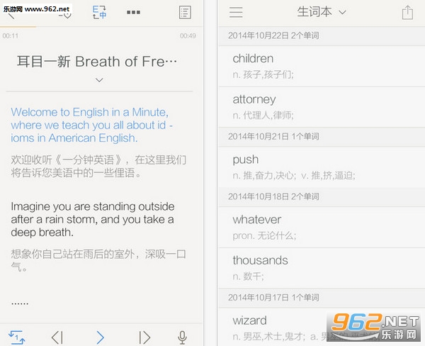 不需要操作屏幕,直接耳机控制就可以逐句朗读原文,对比原声纠正发音,零碎时间练习口语。