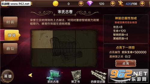 收集特定谜题激活神器,增加主角大技能伤害。
