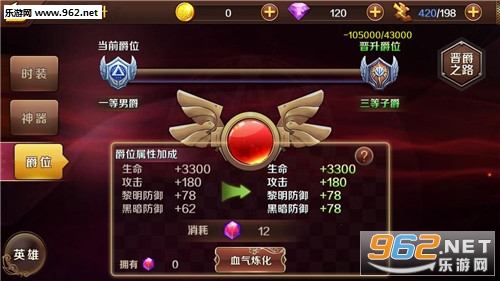 提升称号,血水晶(血宴讨伐,竞技场,城堡掠夺等。)需要消耗用于血气提炼。注射血晶的过程中有一定的暴击几率,获得多次血气提升。