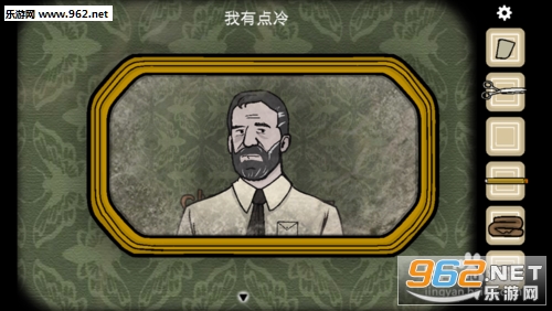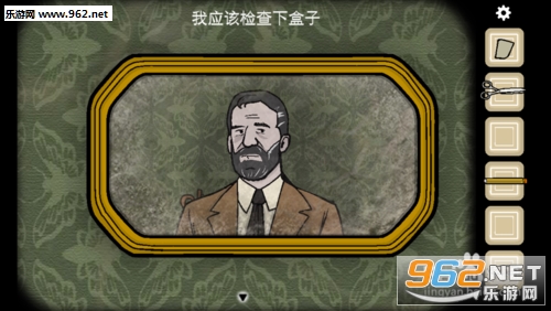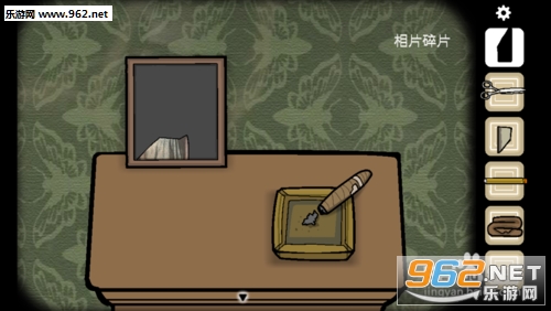 手指轻击切换到墙上挂着图片的房间,沙发左侧的柜子,点击放大,照片不完整,我们需要收集照片碎片;拿起雪茄。