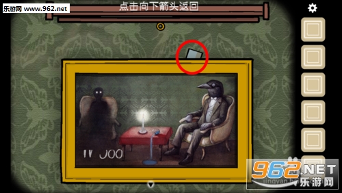 在墙上挂着图片的房间里,点击图片放大,拾取碎片。