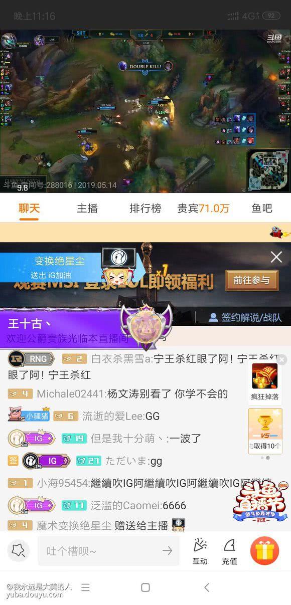 这一次斗鱼出台的"照妖镜"改变了成为贵宾的资格,间接让我们看到了《英雄联盟》赛事的热度。IG战队最近可以说是最火的一支队伍,其赛事的精彩程度更是让观众们忍不住看了一遍又一遍。最近IG战队以9连胜姿态打破MSI赛事的记录之后,斗鱼直播的贵宾数据最高时达到了70多万!这七十多万都是花了人民币为IG战队送礼物的,由此可以看出LOL这款游戏的底蕴呀!